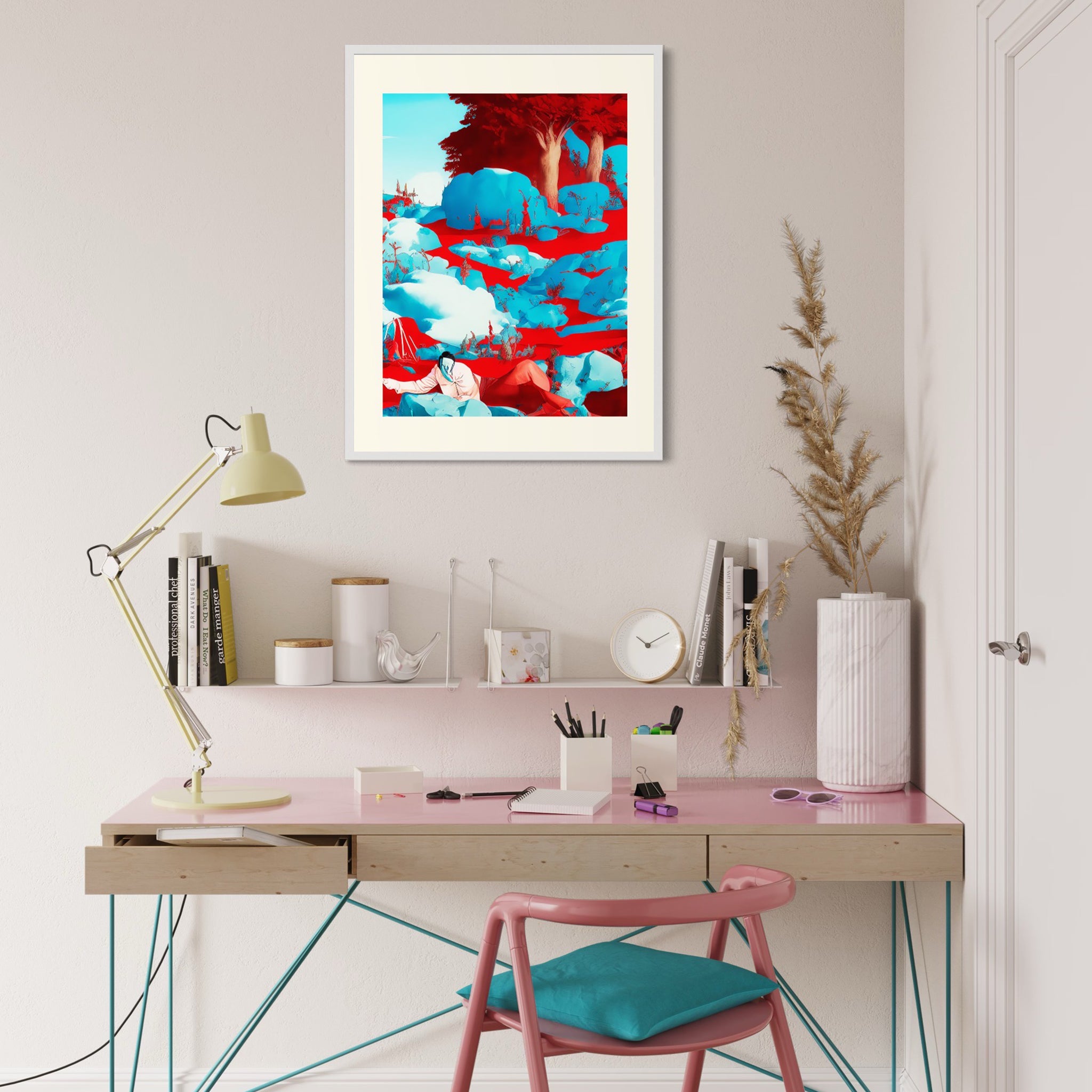 Meditativer Farbenrausch der entsteht, wenn aus Winter Frühling wird. Lyrisch schlängelt sich die Wärme durch scheinbar dickes Eis, lässt farblich Neues entstehen und legt mit jeder Fläche und jeder Linie, den Zauber des Aufbruchs frei. Ein visueller Ort an dem Träume zu Hause sind und die ersten wohligen Momente des Frühjahrs ihren Anfang offenbaren.